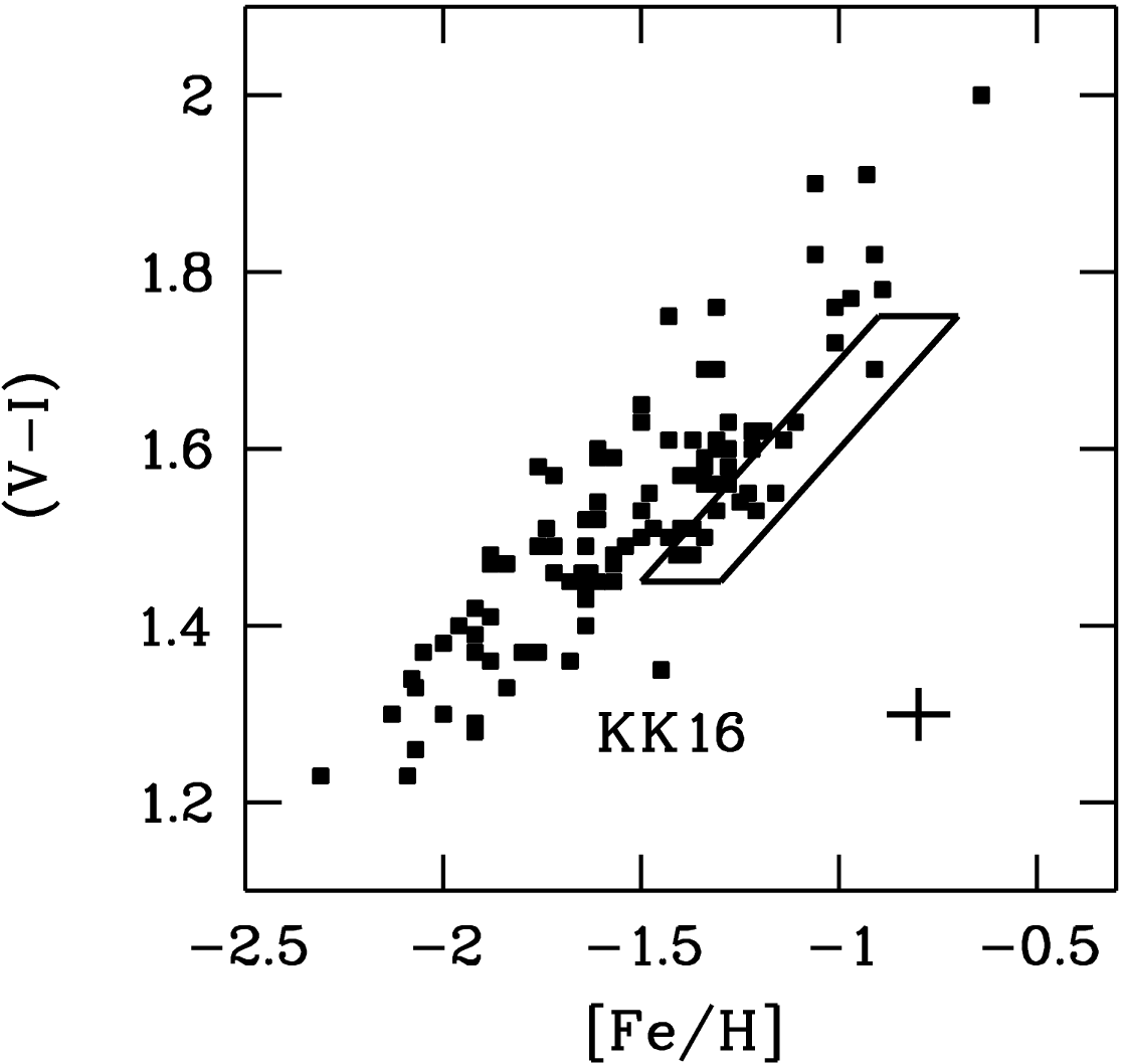 измерению показателей цвета ветви красных гигантов выделены галактики с