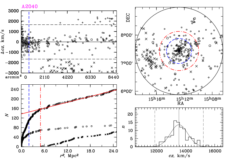 последовательности». Галактики скопления отобраны в пределах 2.7σ. |