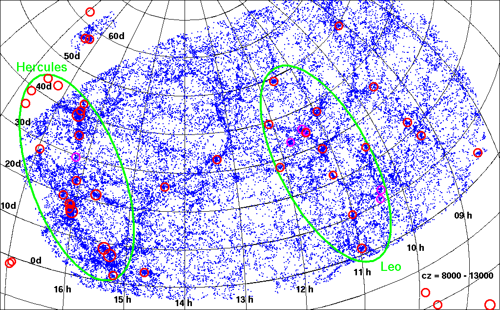 галактик в областях сверхскоплений галактик Hercules, Leo, Bootes, Ursa