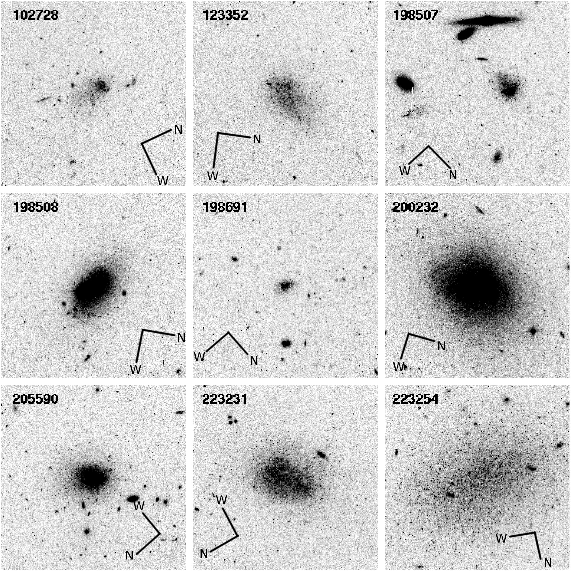 Рис. 12. HST-изображения девяти из 18 исследуемых карликовых галактик.