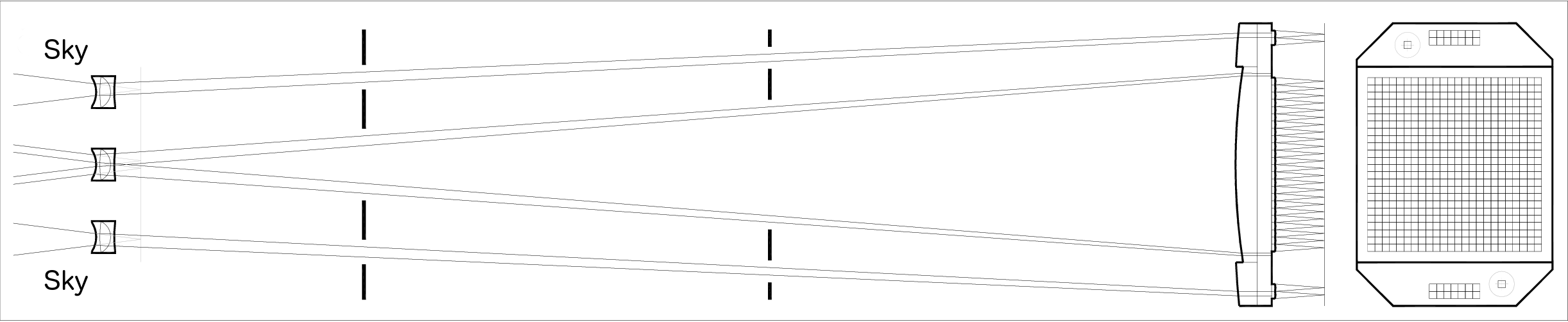 Масштаб изображения, создаваемого IFU, равен 0.75"/линзу, поле зрение соответствует 16.5"x16.5".