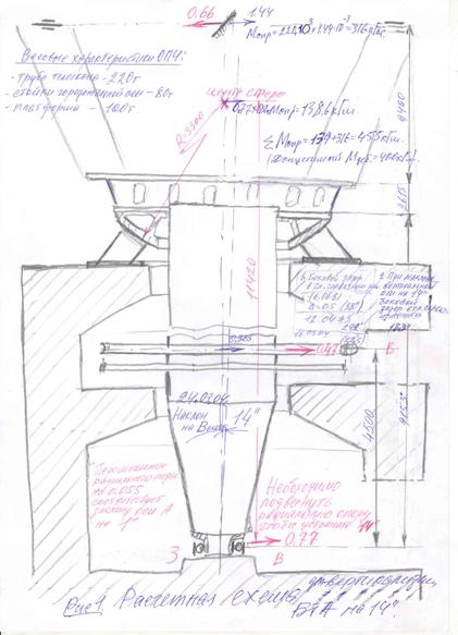Чтобы исключить влияние цилиндрического зацепления, боковой зазор в нём увеличен до 0.8мм, а с помощью регулировочных винтов водила, зазор отрегулирован так, что при контакте в главном червячном зацеплении в цилиндрическом зацеплении оставался зазор 0.4мм с обеих сторон зуба. Такого зазора достаточно, чтобы компенсировать неточность изготовления большого цилиндрического колеса и не допускать включения его в работу по всему диаметру колеса, обеспечив механическую защиту червячной пары от перегрузок, путём включения цилиндрической шестерни в работу при смещении подвески червяка на 0.3-0.4мм. После устранения причин, вызывающих дополнительное сопротивление вращению телескопа по оси А, уменьшен груз выборки мертвого хода с 462 до 294кг.