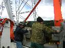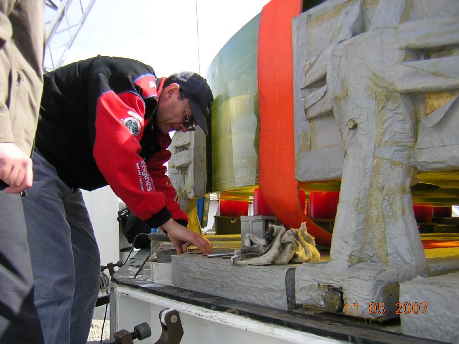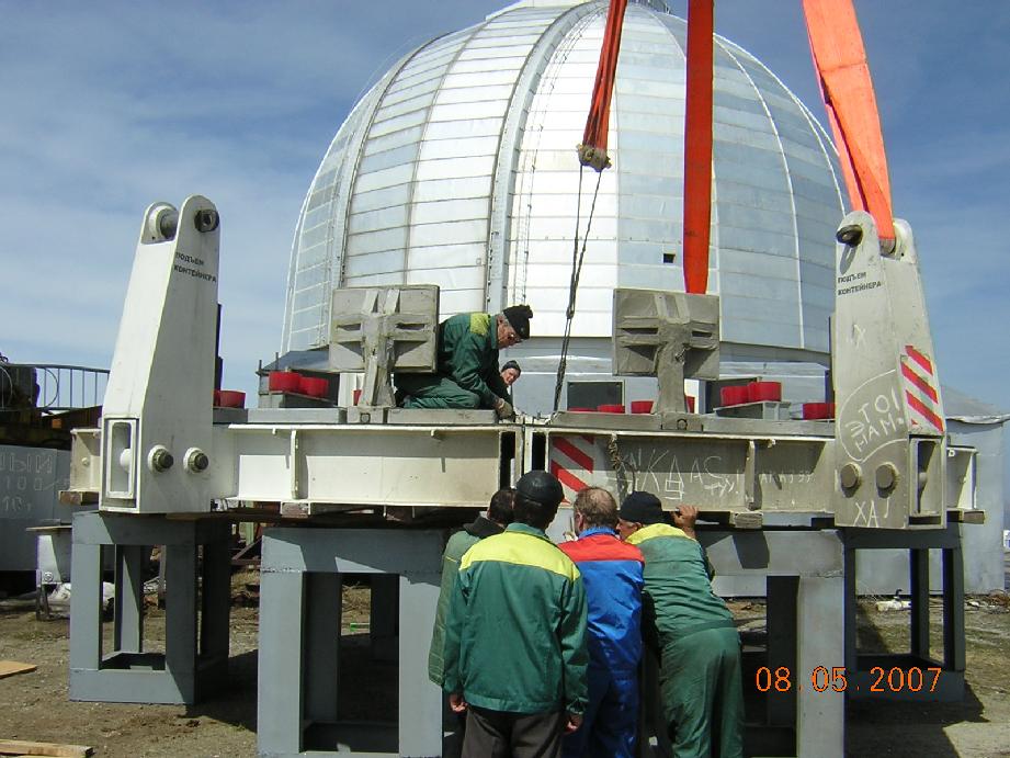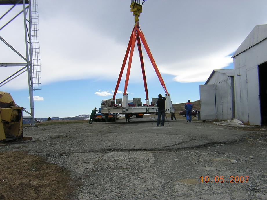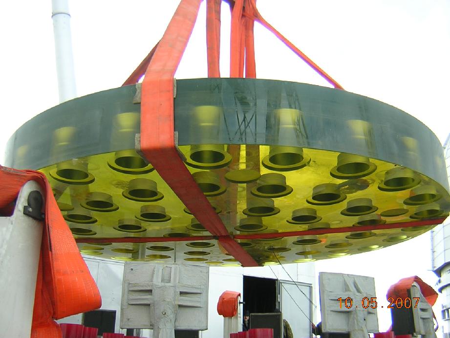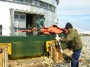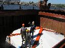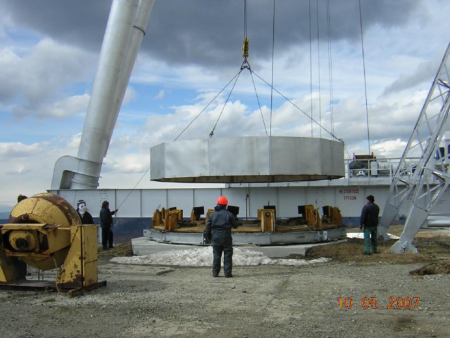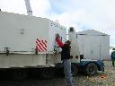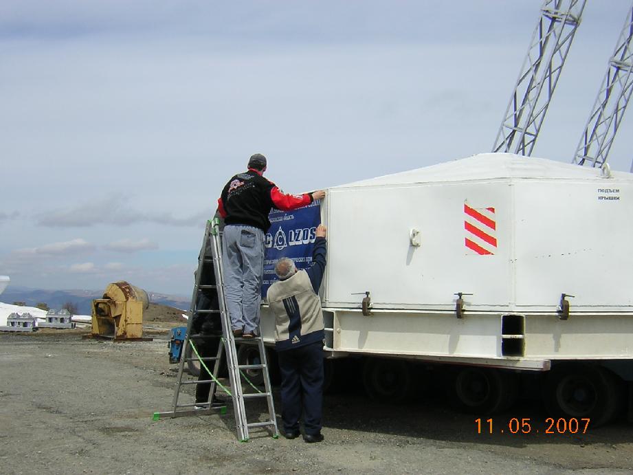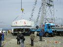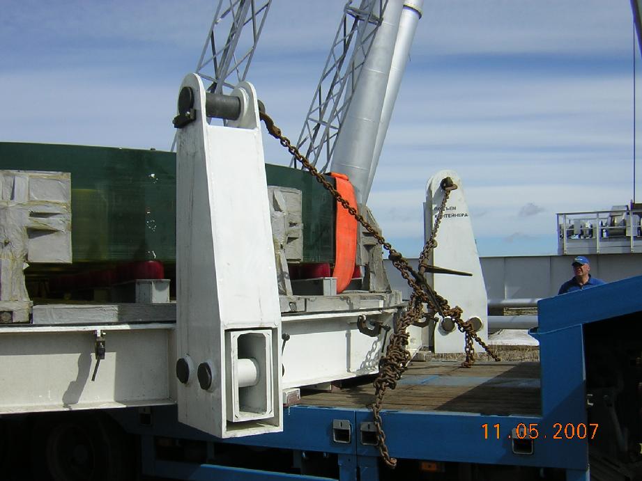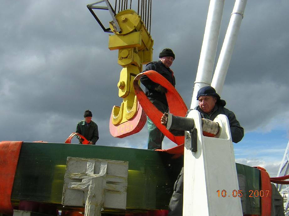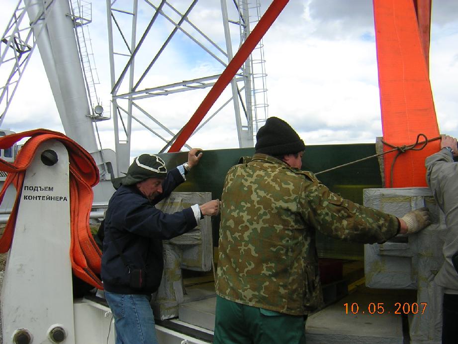 Погрузка контейнера с зеркалом на баржу в Ростове