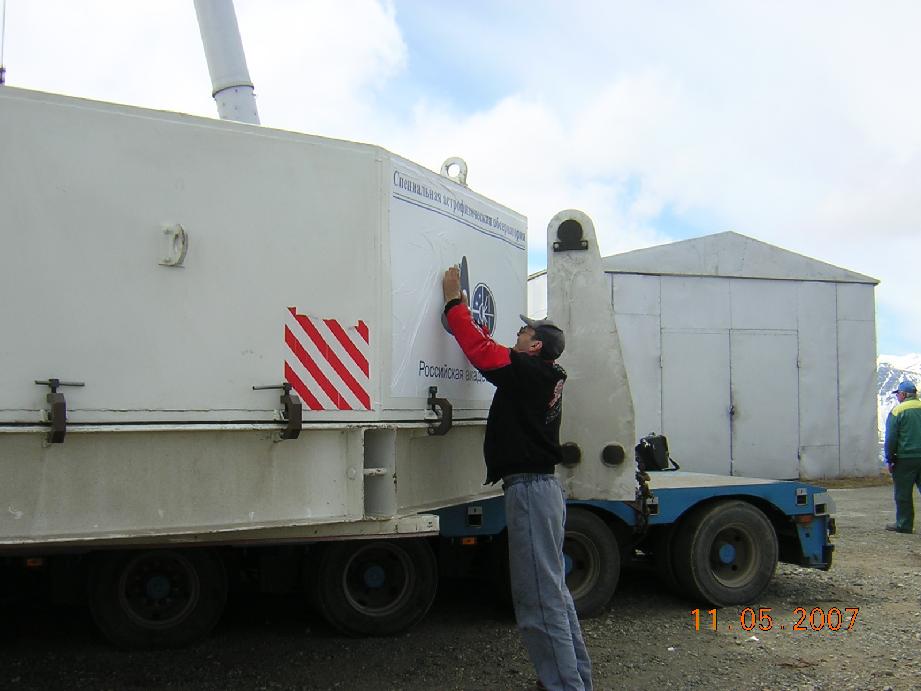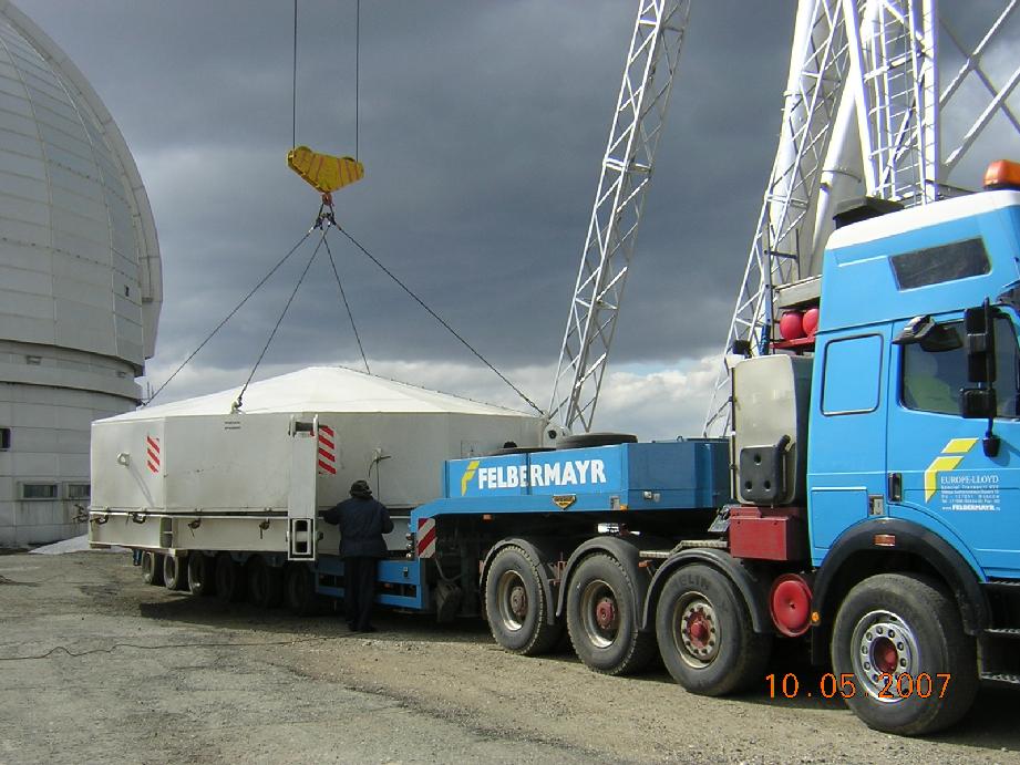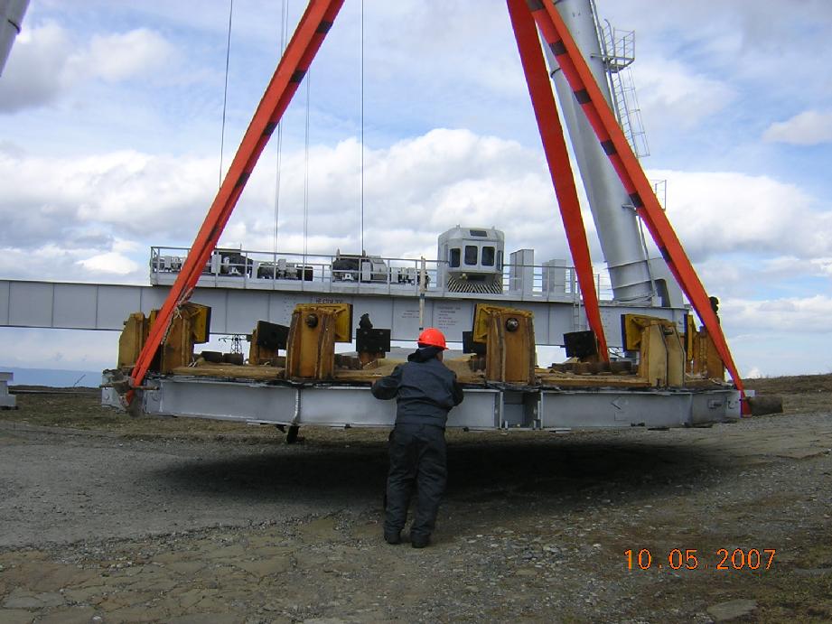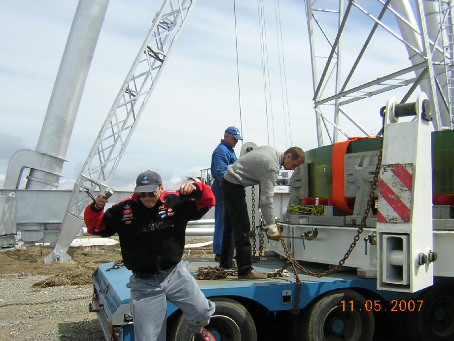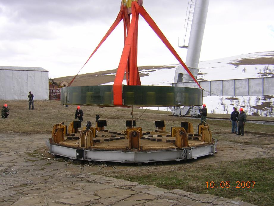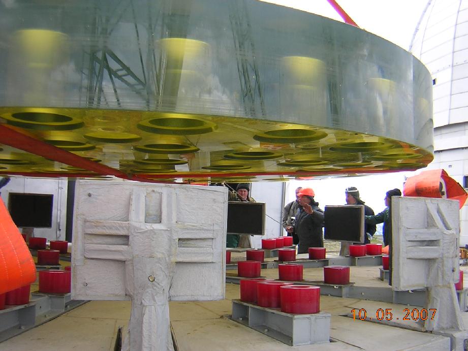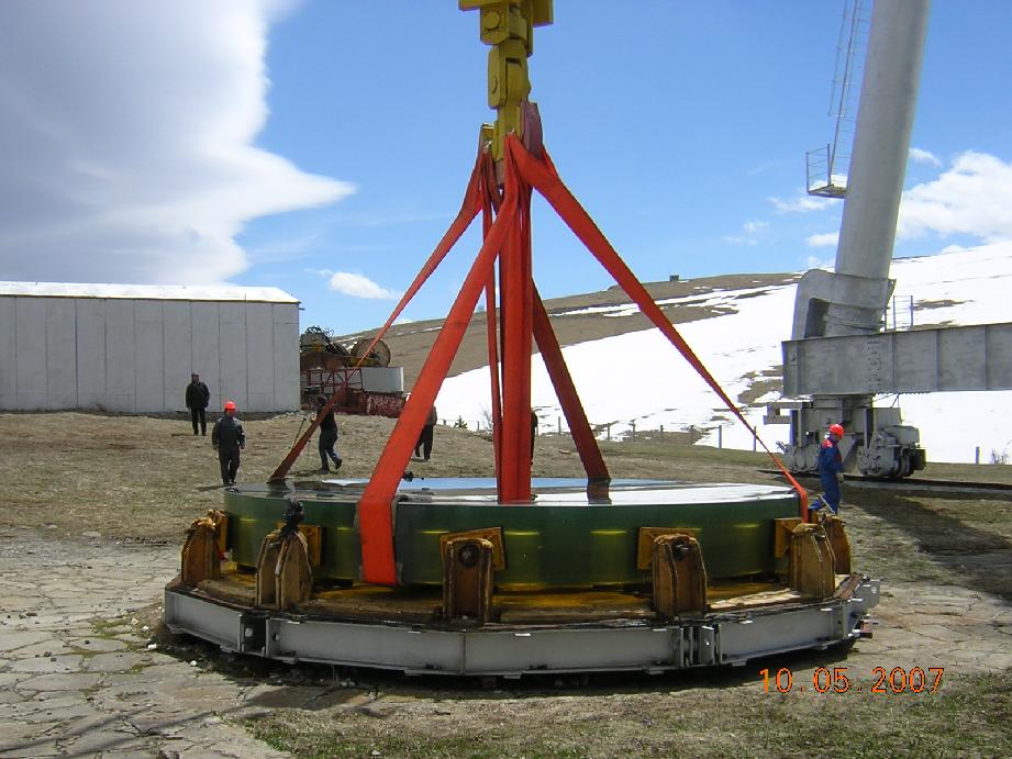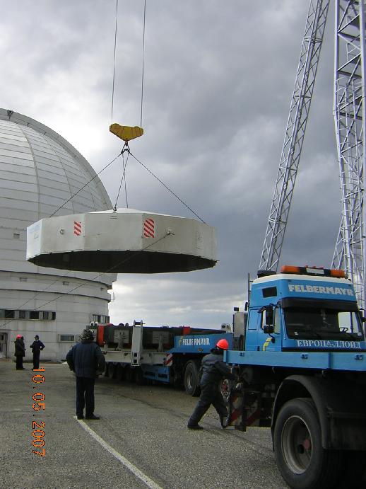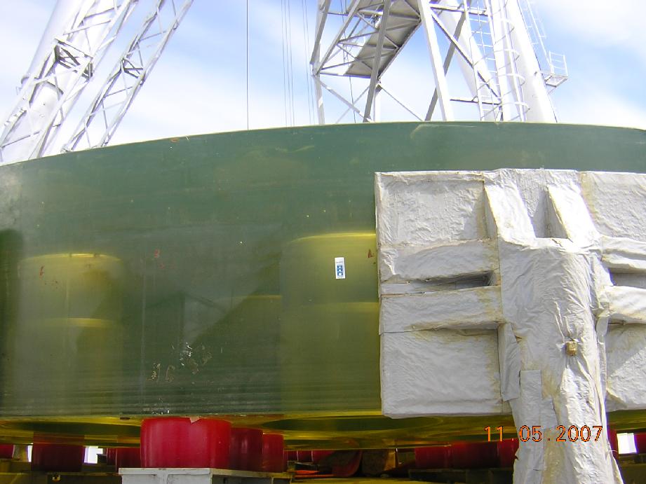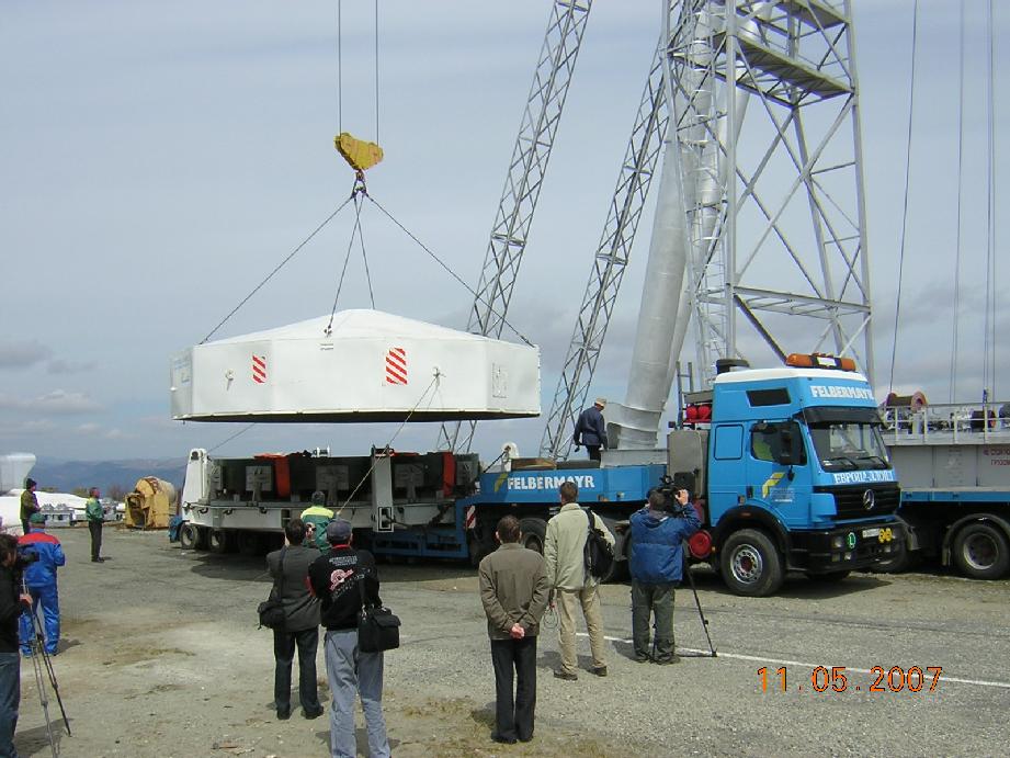 Погрузка контейнера с зеркалом на баржу в Ростове
