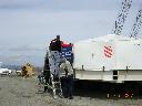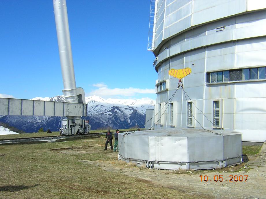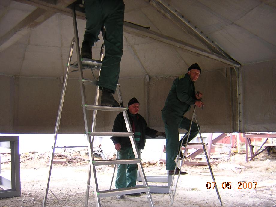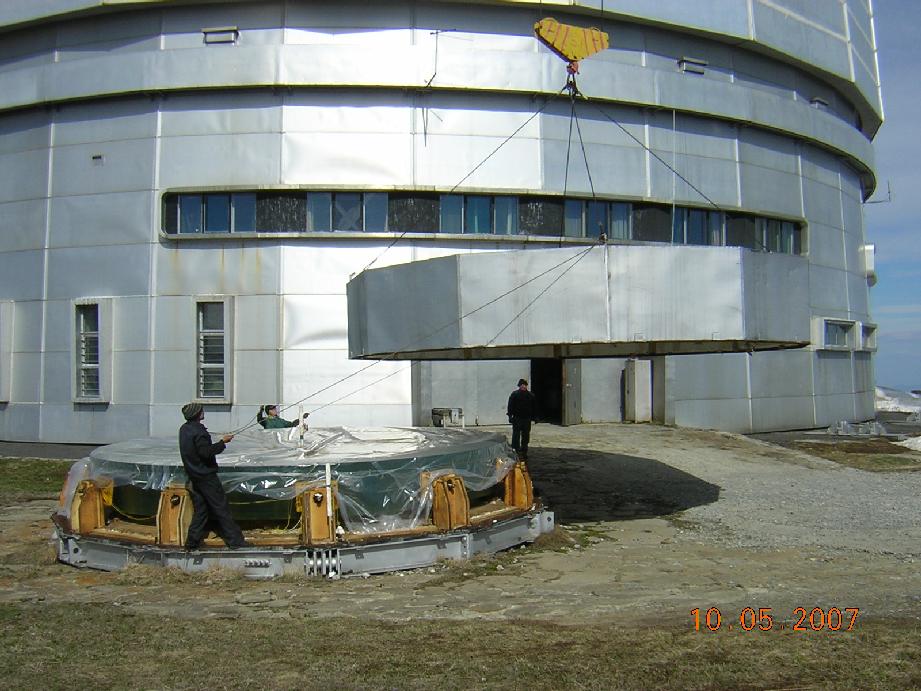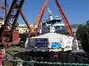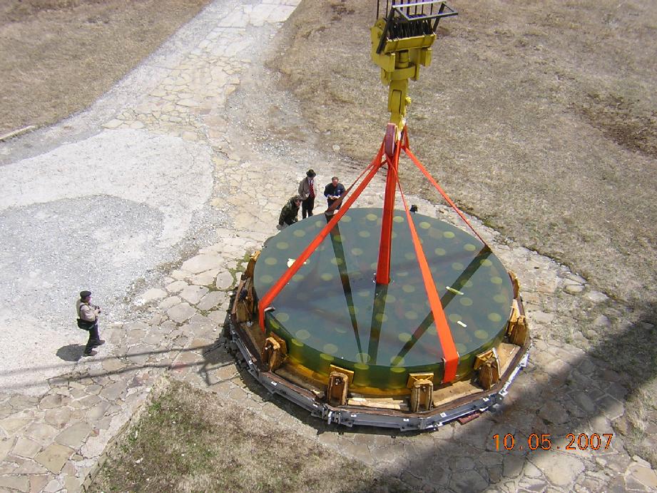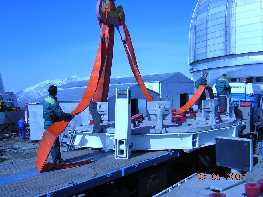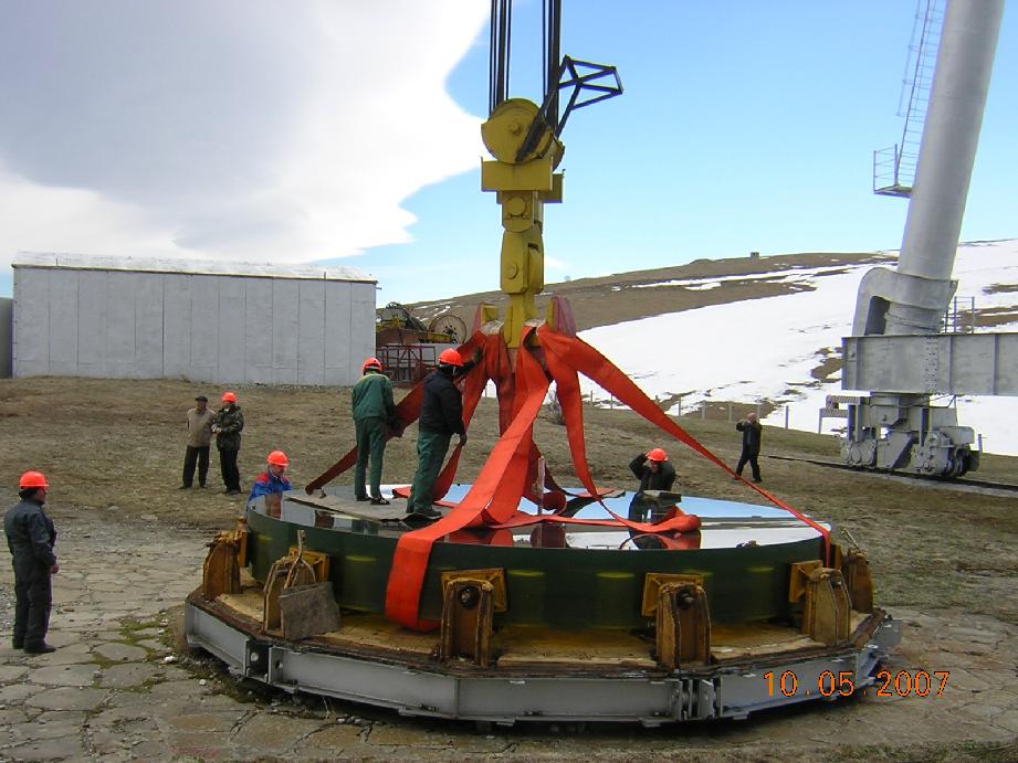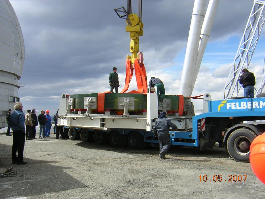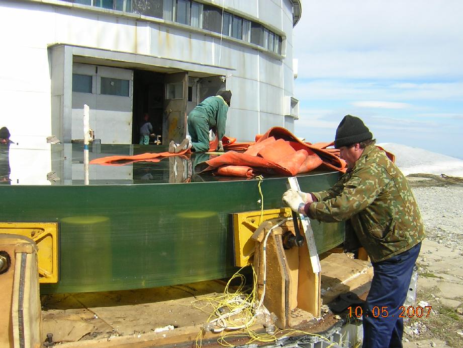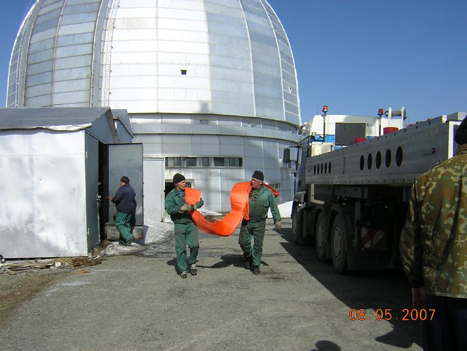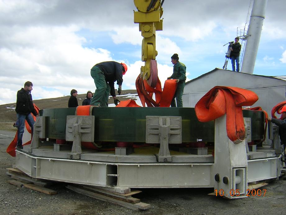 Погрузка контейнера с зеркалом на баржу в Ростове