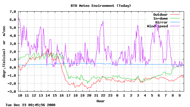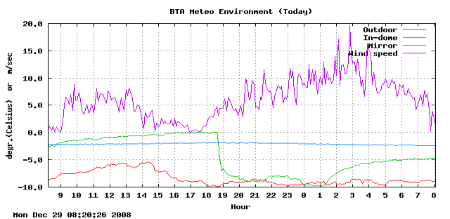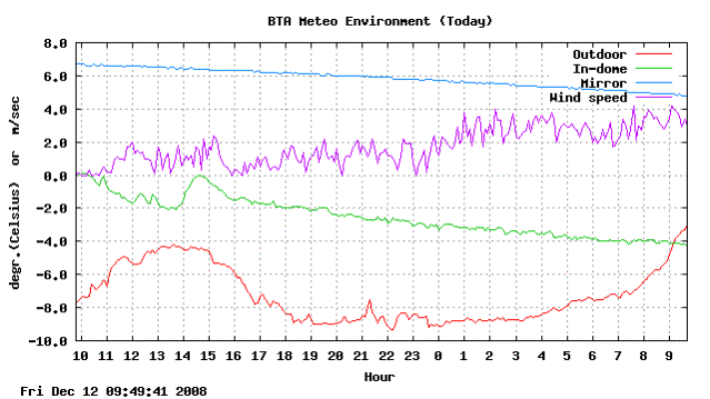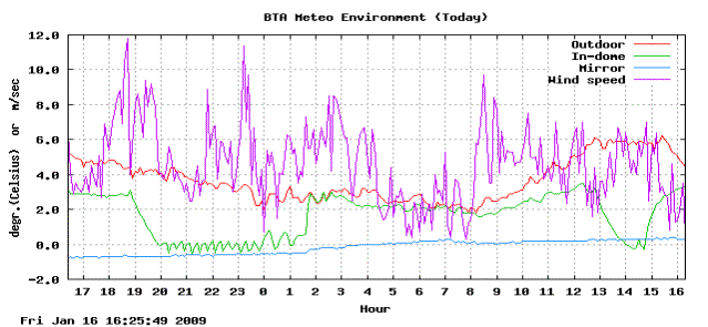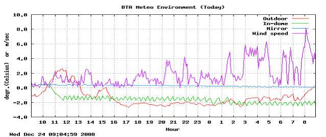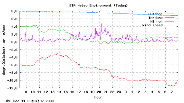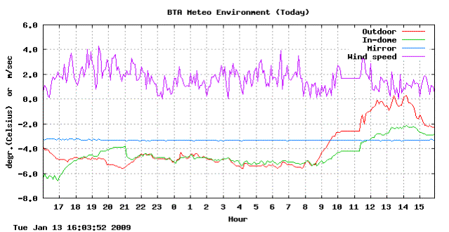 температурного режима работы зеркала БТА в условиях переменных погодных условий