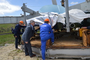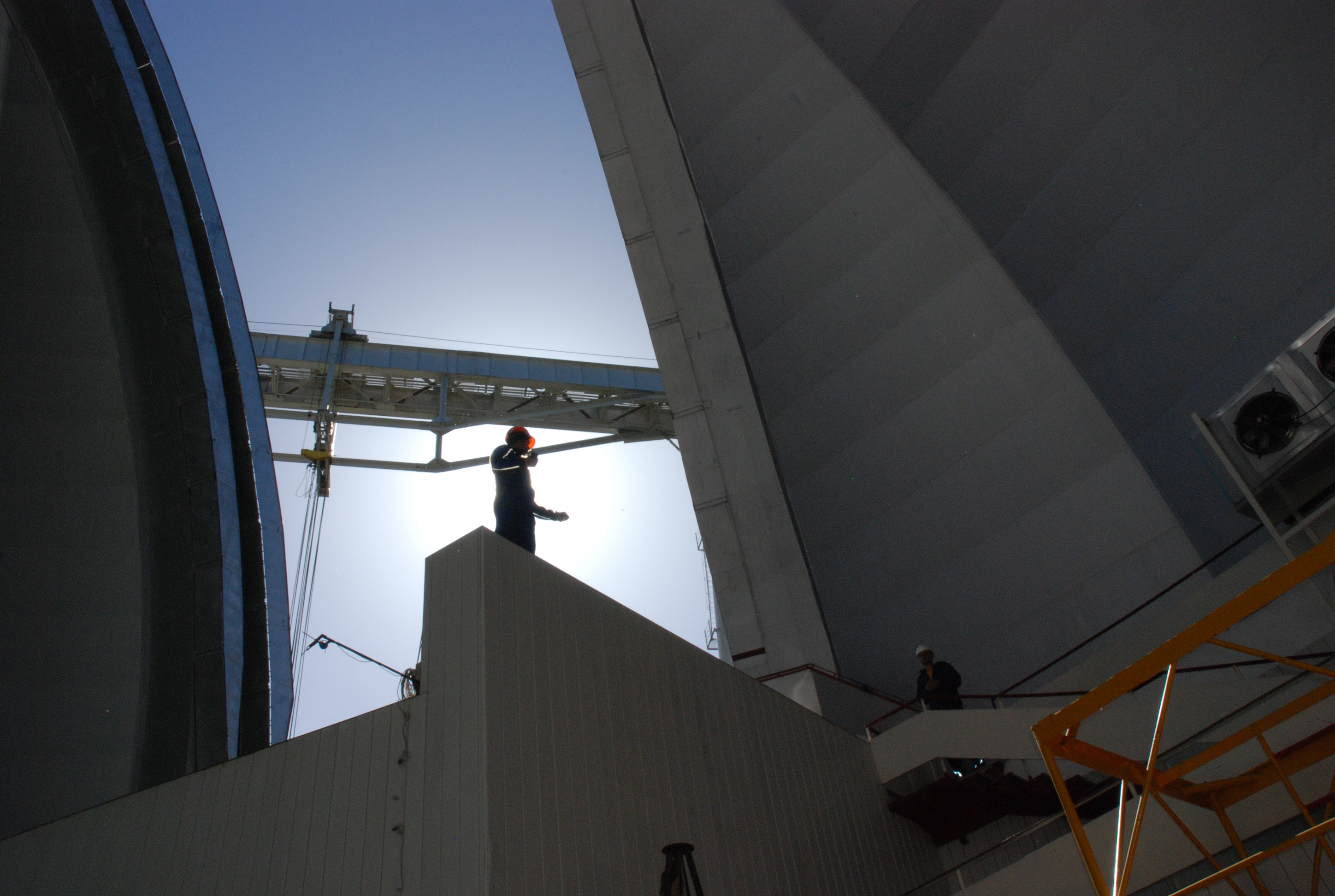 The crane was once used in Lytkarino in 2007 before transportation of the mirror and after its arrival to the observatory in February this year; however, at that time the mirror should be lifted to a small height in order to take it from the vehicle platform. For reference, its transferral to the telescope dome, as well as the whole process of the mirror replacement itself, was last time performed in 1979. As distinguished from the past years, now the operator's cabin was equipped not only with the two-way communication but also with the video broadcast from the dome.