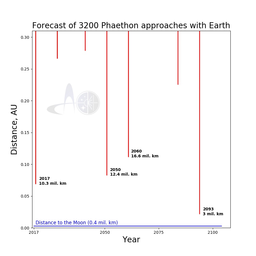 will occur in 2050 and 2060. Phaethon will be closer to the Earth