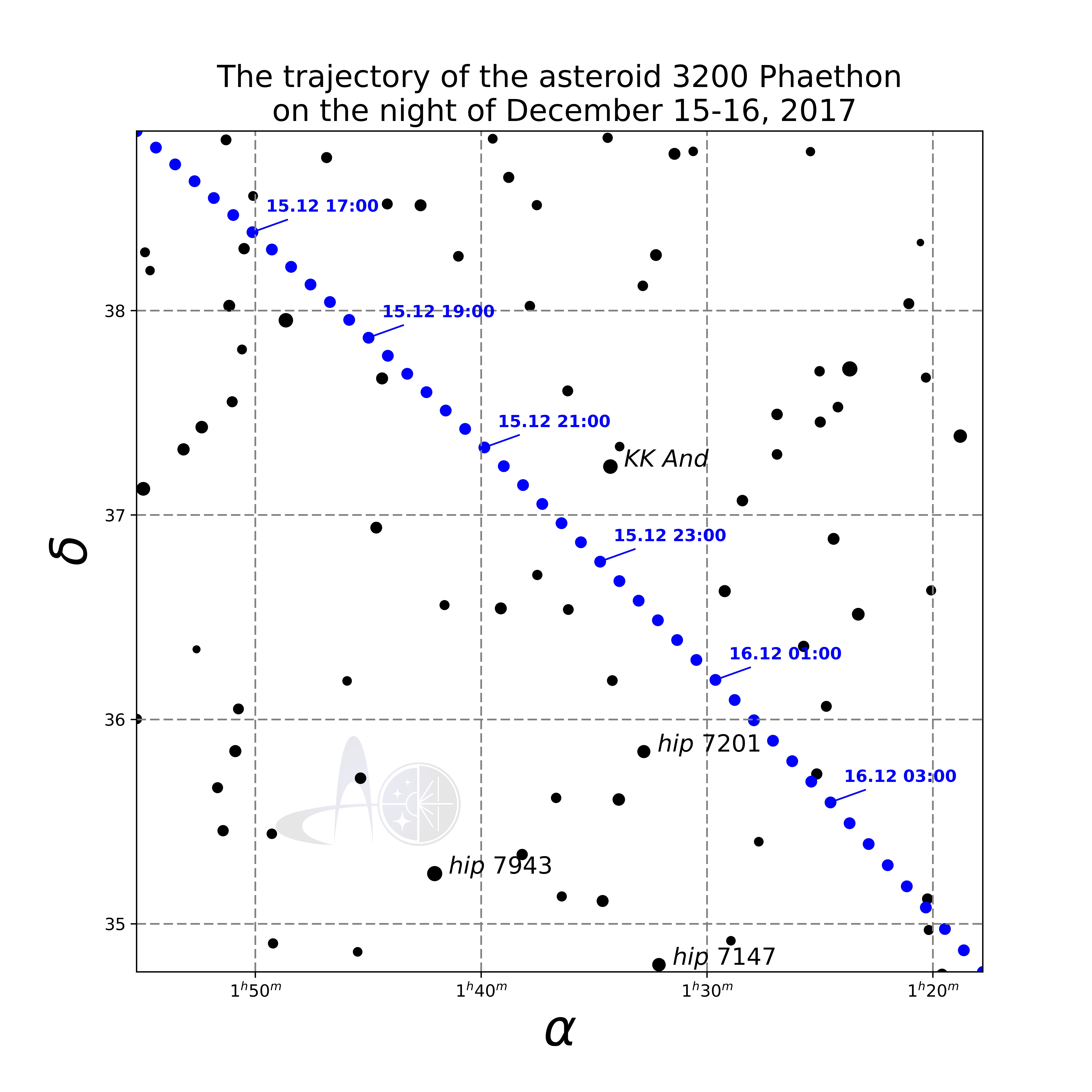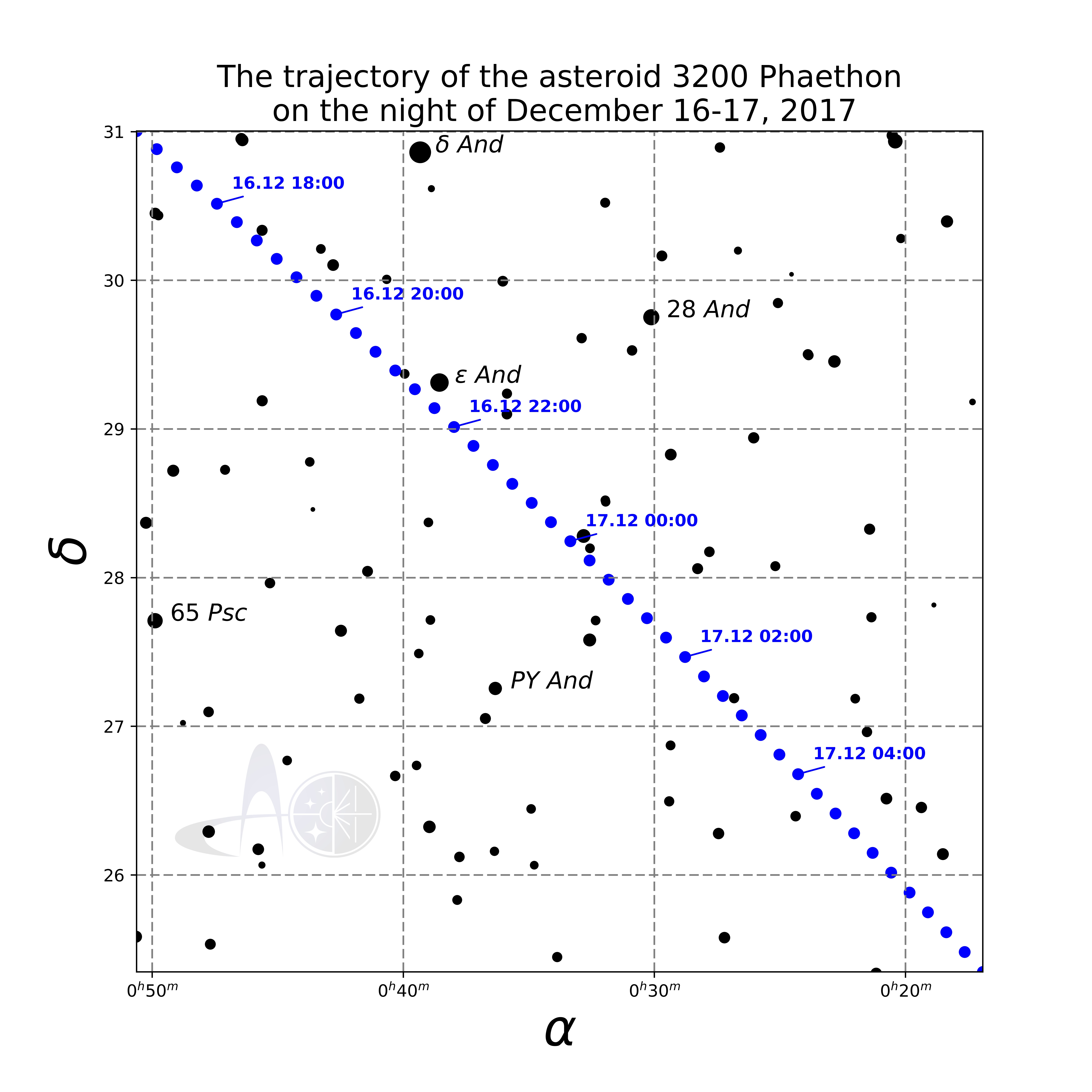 Trajectory of the asteroid Phaethon in the nights of December