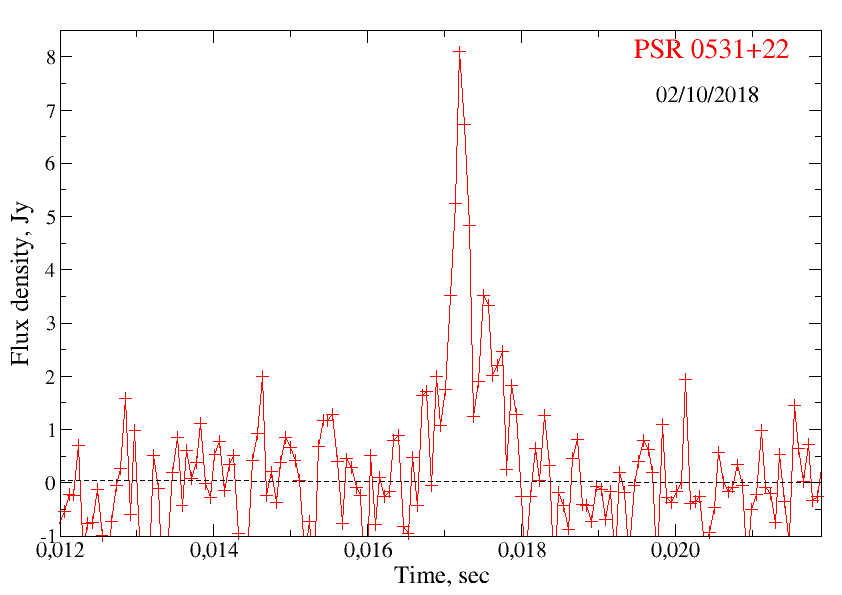 (a) Actual recording (8 ms) of the passage of a giant impulse in the Crab