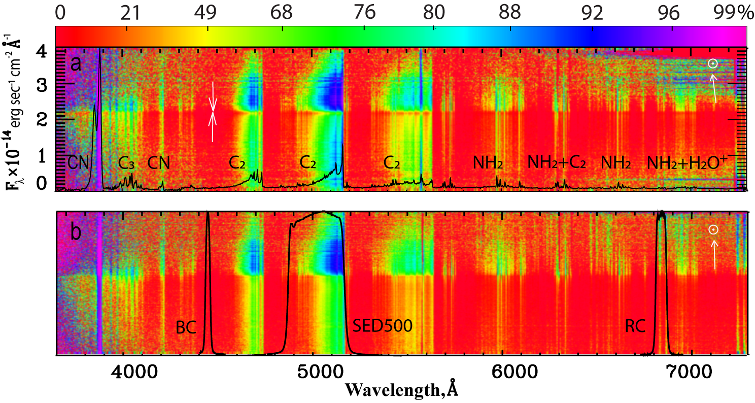Spectral observations of comet C/ 2019 Y4 (ATLAS) on April 14 (top) and