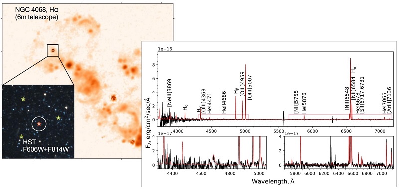 instrument at the 6-m SAO RAS telescope. On the left, there is the image of the galaxy in the H-alpha line;