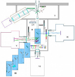blocks (III), IV and V - the position-sensitive detectors for the red and