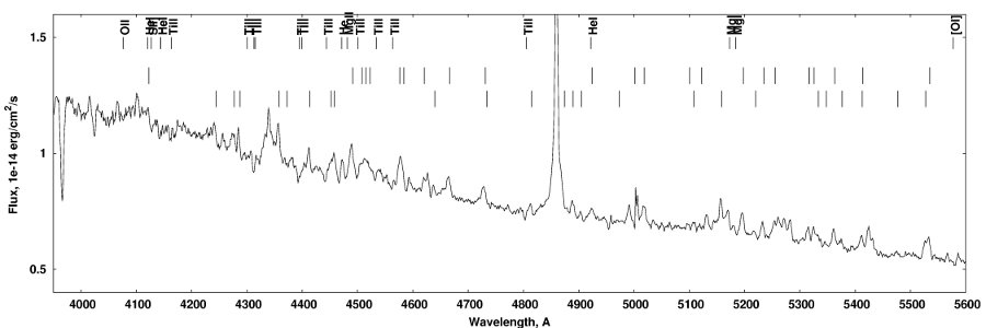 on the spectra obtained on the 6-m BTA telescope (Fig.2), is 16000 K.