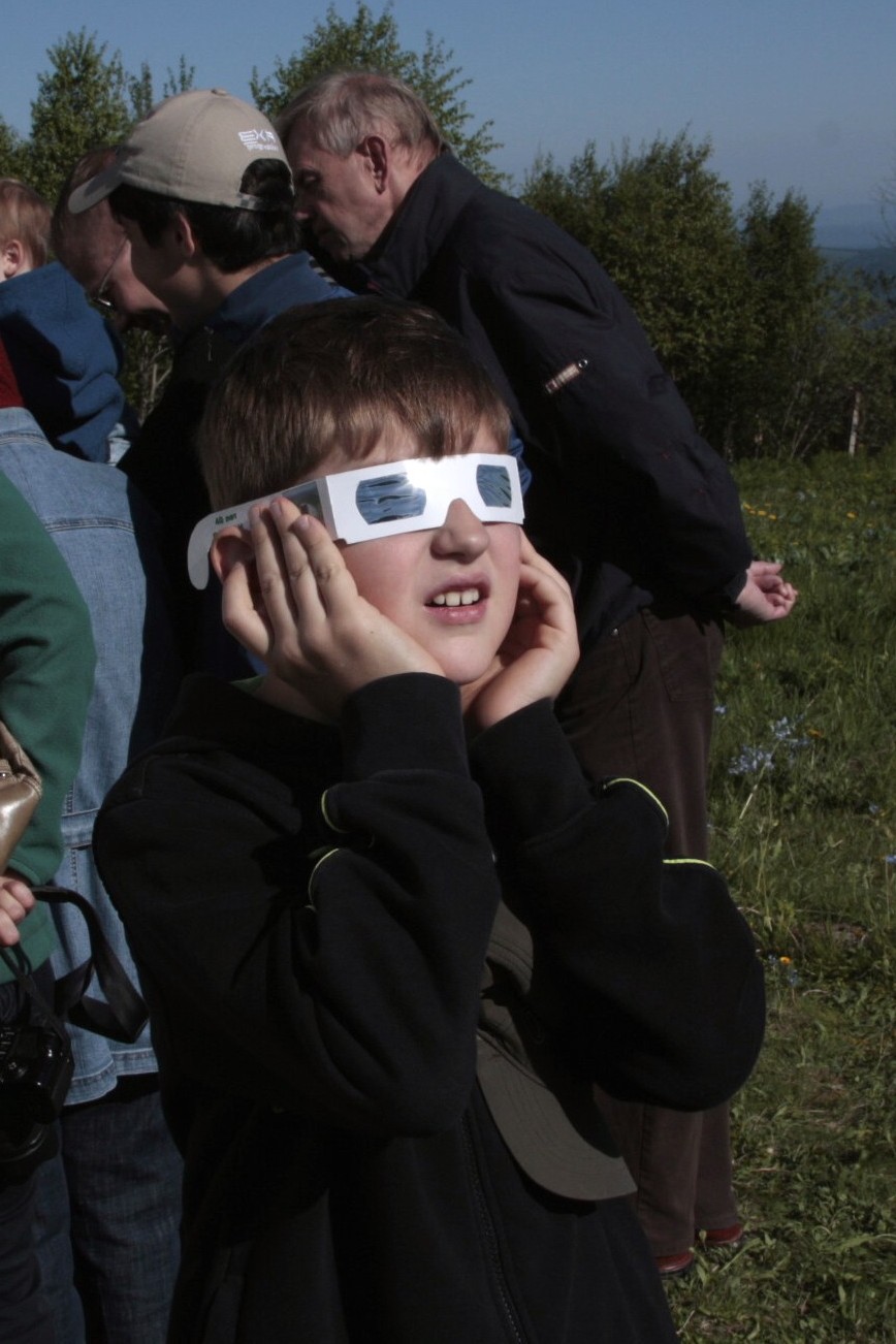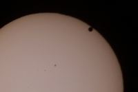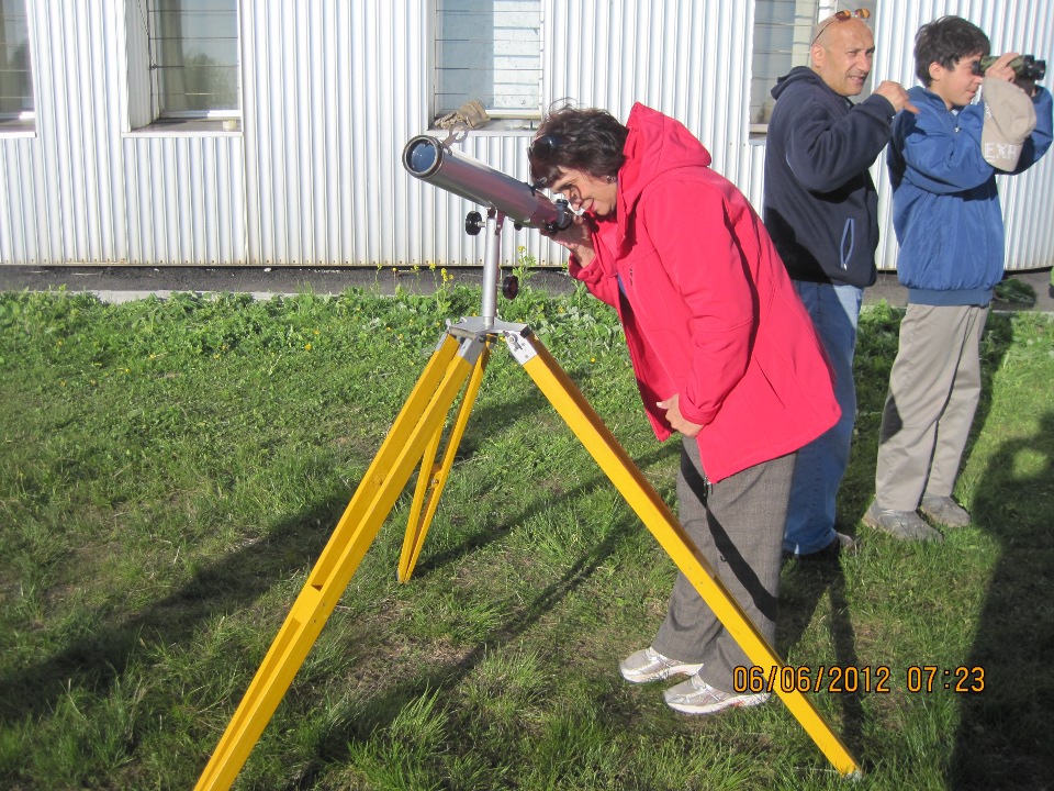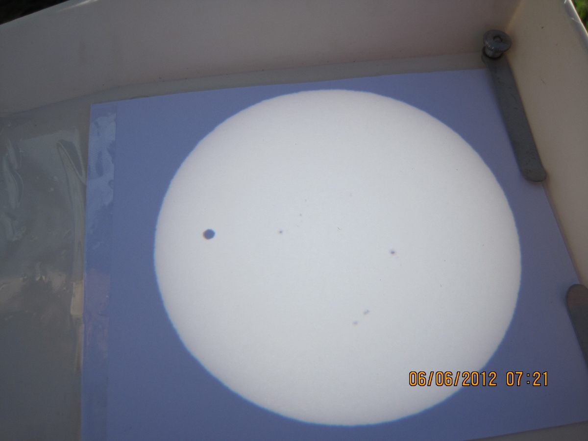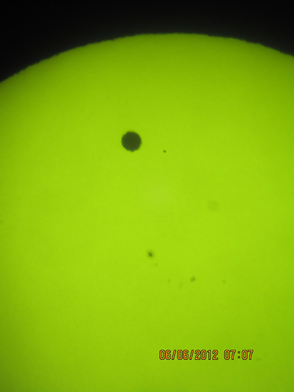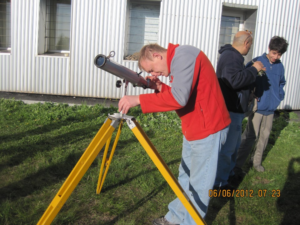 Первое касание Венерой диска Солнца в 02:09 можно было наблюдать благодаря интернет-вещанию, организованному проектом GLORIA. Примерно в 05:30 Солнце появилось над горизонтом для наблюдателей САО. Сквозь облака и дымку на горизонте отчетливо были видны темное пятно диска Венеры и большая группа солнечных пятен. Чем выше поднималось Солнце, тем спокойнее становилась атмосфера, ветер, начавшийся еще глубокой ночью, стих и на солнечном диске можно было наблюдать большое количество деталей. К этому времени усилиями отдела информатики нашей обсерватории было организовано вещание через сеть Интернет с помощью камеры наблюдения, установленной на башне телескопа Цейсс-1000. Невероятный интерес у людей, собравшихся на ВНП, вызвал момент третьего контакта, когда диски Венеры и Солнца снова соприкоснулись. Именно в этот момент в 1761 г. М.В. Ломоносов наблюдал слабое свечение диска планеты, которое он истолковал, как преломление солнечного света в атмосфере Венеры. В этот раз, несмотря на все старания, увидеть "эффект Ломоносова" так никому и не удалось. В 08:58 Венера окончательно покинула диск Солнца. Следующий раз подобное явление земляне смогут наблюдать только в декабре 2117 года при гораздо менее благоприятных условиях.