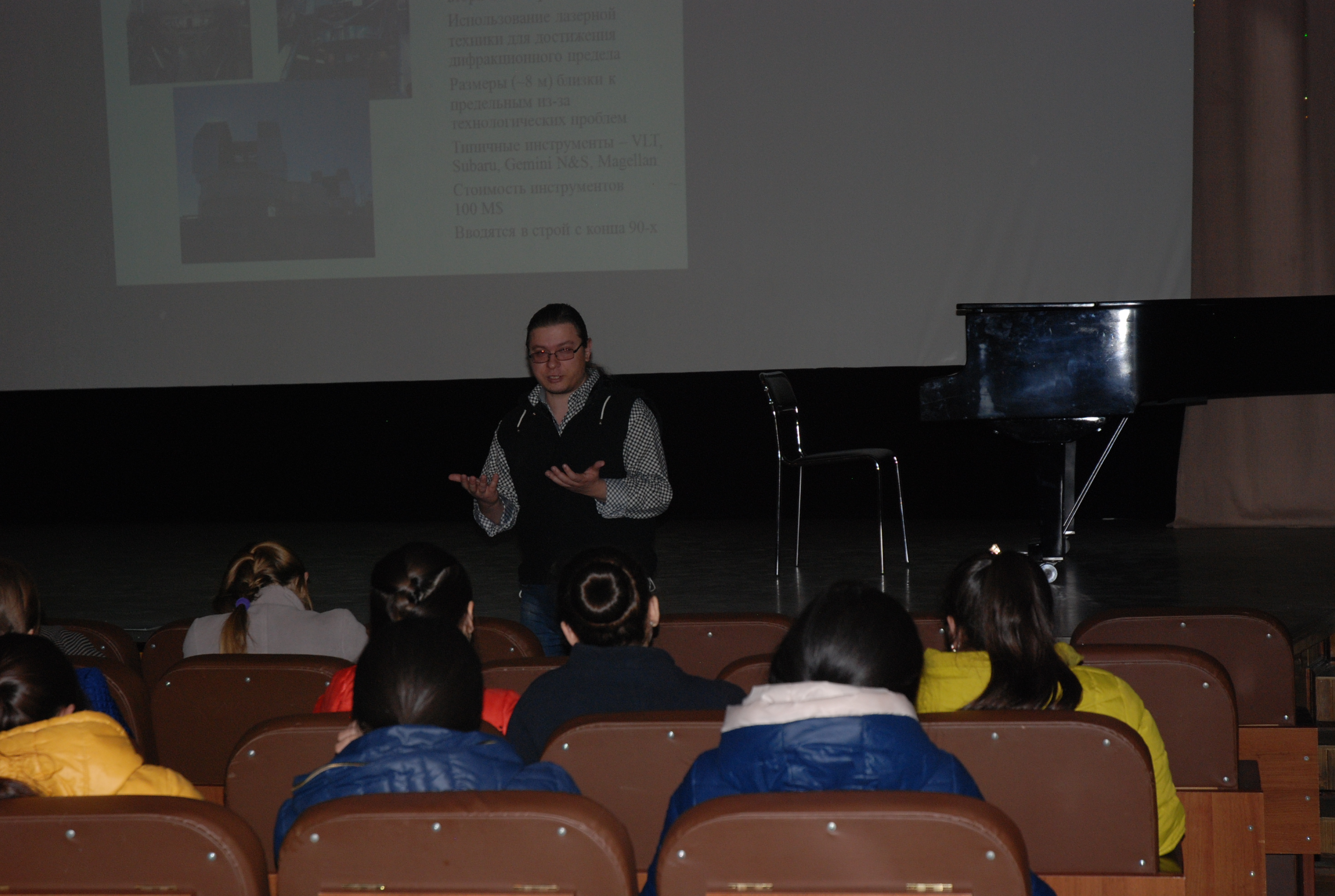 Программа мероприятия была построена следующим образом: сначала с гостями беседовали сотрудники обсерватории, знакомили посетителей с историей САО, рассказывали, что изучает наука астрофизика, затем визитеры поднимались на Верхнюю научную площадку к Большому Телескопу Азимутальному и в завершении - экскурсия на РАТАН-600. Для лекторов не существует единой программы или рекомендаций, как вести беседу. Каждый выбирает оптимальную, по его мнению, форму общения с группой. Одни начинают свои лекции с просмотра фильма, другие подготовили презентации с завораживающими фотографиями космических объектов, третьи ведут беседу в свободном стиле или в форме диалога со зрителями. Сотрудник лаборатории физики звезд Ольга Николаевна Шолухова подготовила стихи и игры для самых маленьких посетителей. Астрономы-профессионалы были приятно удивлены тем, что дети довольно много знают о космосе, о строении Вселенной, о том, что Солнце - это ближайшая к Земле звезда, что в Солнечной системе, помимо планет, есть кометы и астероиды, что наша Галактика состоит из звезд, газа и пыли и называется Млечный Путь. Дети из обычных школ хуторов и аулов активно интересуются окружающим миром, и очень жаль, что интерес к астрономии не развивается на уроках: в российских школах важнейшая для миропонимания фундаментальная наука астрономия не преподается.
