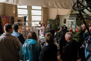 И далее публикуем отзыв нижегородского художника Артема Филатова, тоже бывшего в числе гостей: "По следам выставочного проекта "Обсерватория" в САО РАН в 2016 году Gogova Foundation решили перенести программу резиденций из Баку в поселок Нижний Архыз, в родную Карачаево-Черкесию. Первая резиденция при обсерватории открылась проектом Лизы Артамоновой и Илины Червонной - "Маршрут «Жемчужные тропы»", столкнув туристический образ мышления и внутреннее самосознание жителей поселка. При этом художницы сконцентрировали внимание на культуре, носителями которой в своей основе являются молодые сотрудники научного центра, имеющие свою собственную идентификацию не столько с Нижним Архызом, сколько с Буково - историческим названием поселка. После акцентировано мифических, подтасованных объектов, созданных художницами в качестве зеркала на интересы типичного туриста, мы постепенно перестаем быть чужаками, смотрящими на коренных аборигенов издали, и посредством экспозиции, разбросанной по ближайшей территории и зданиям, погружаемся в репетицию местной спейс-рок группы "КБ", в составе которой играют сотрудники обсерватории. Через призму стороннего взгляда мы узнаем о многогранной, самодостаточной и неформальной культуре академгородка вопреки своим «туристическим» представлениям".