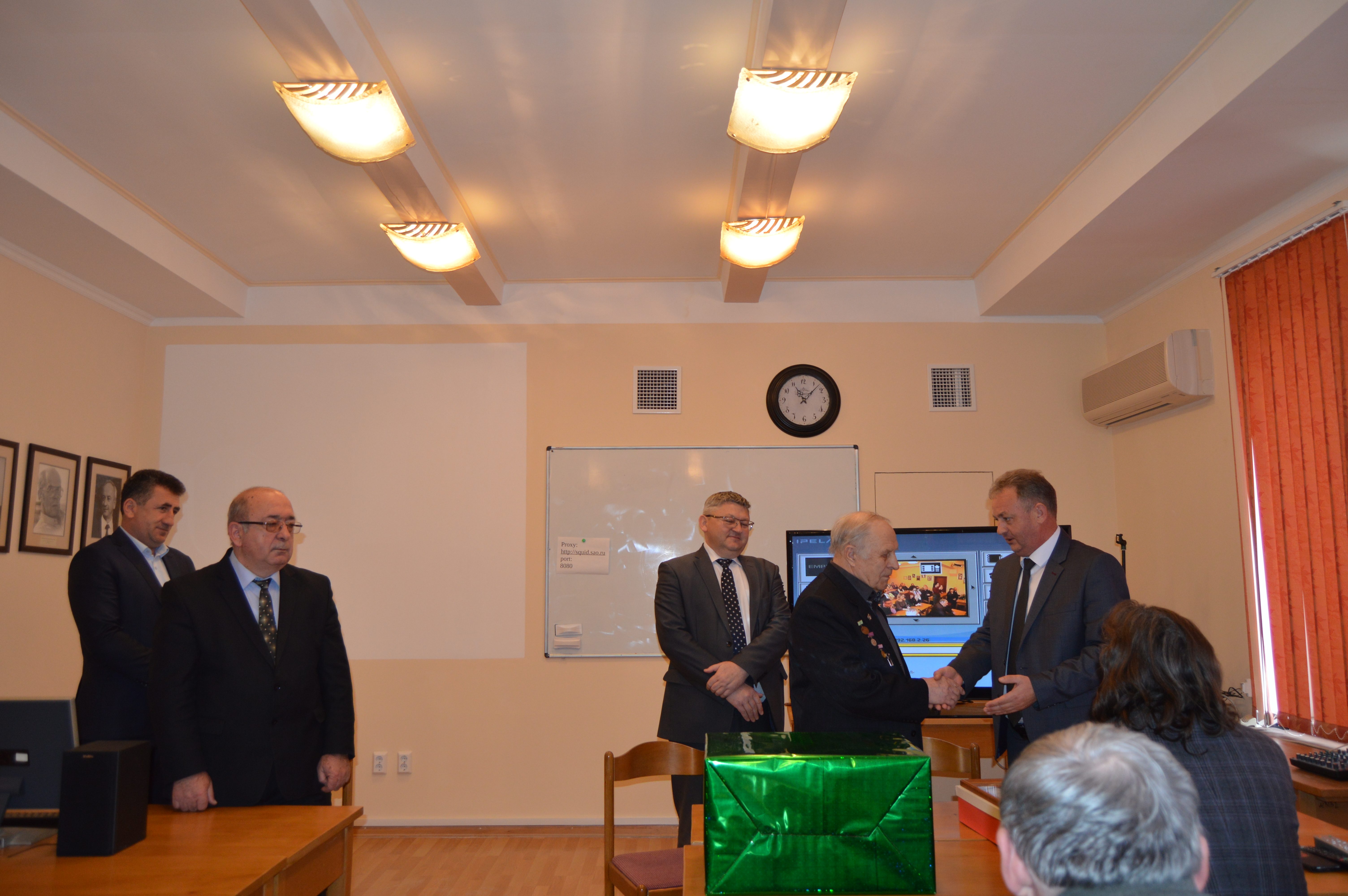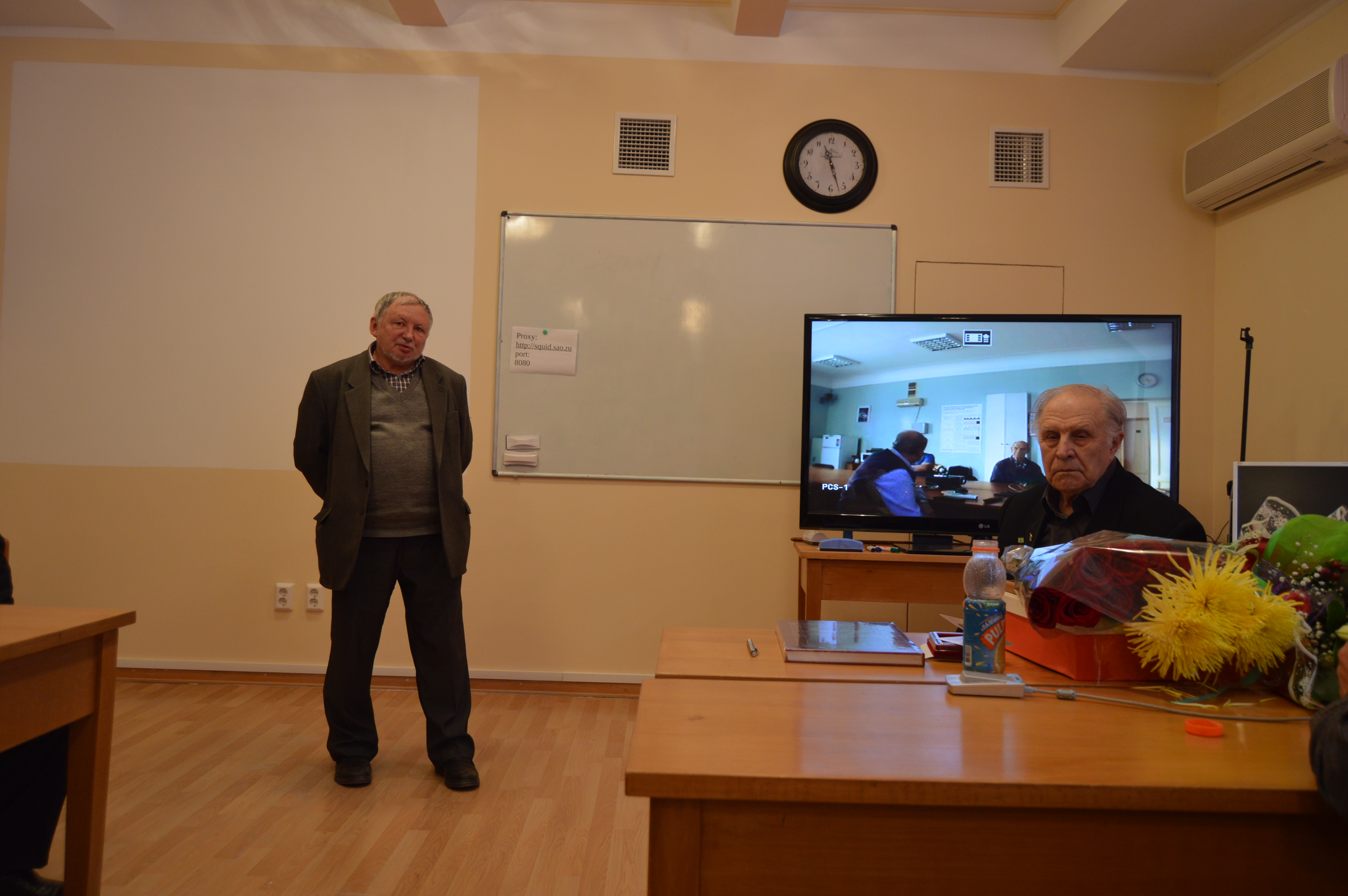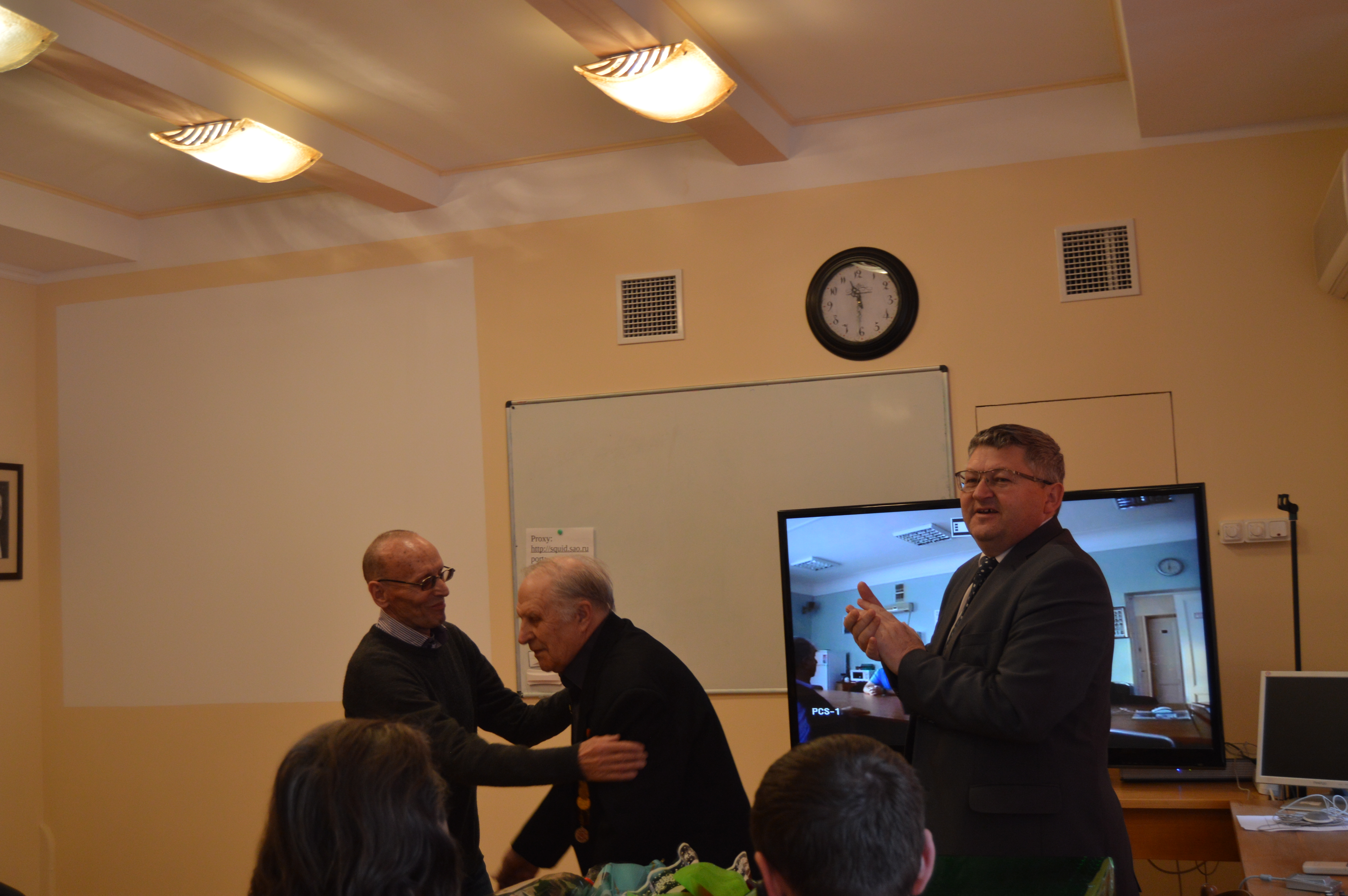 В Малом зале состоялось торжественное собрание, на котором присутствовали представители власти Карачаево-Черкесской республики, глава Зеленчукского района и глава Архызского поселения. Вел заседание директор обсерватории Валерий Валентинович Власюк. Был организован телемост с Санкт-Петербургским филиалом САО РАН.