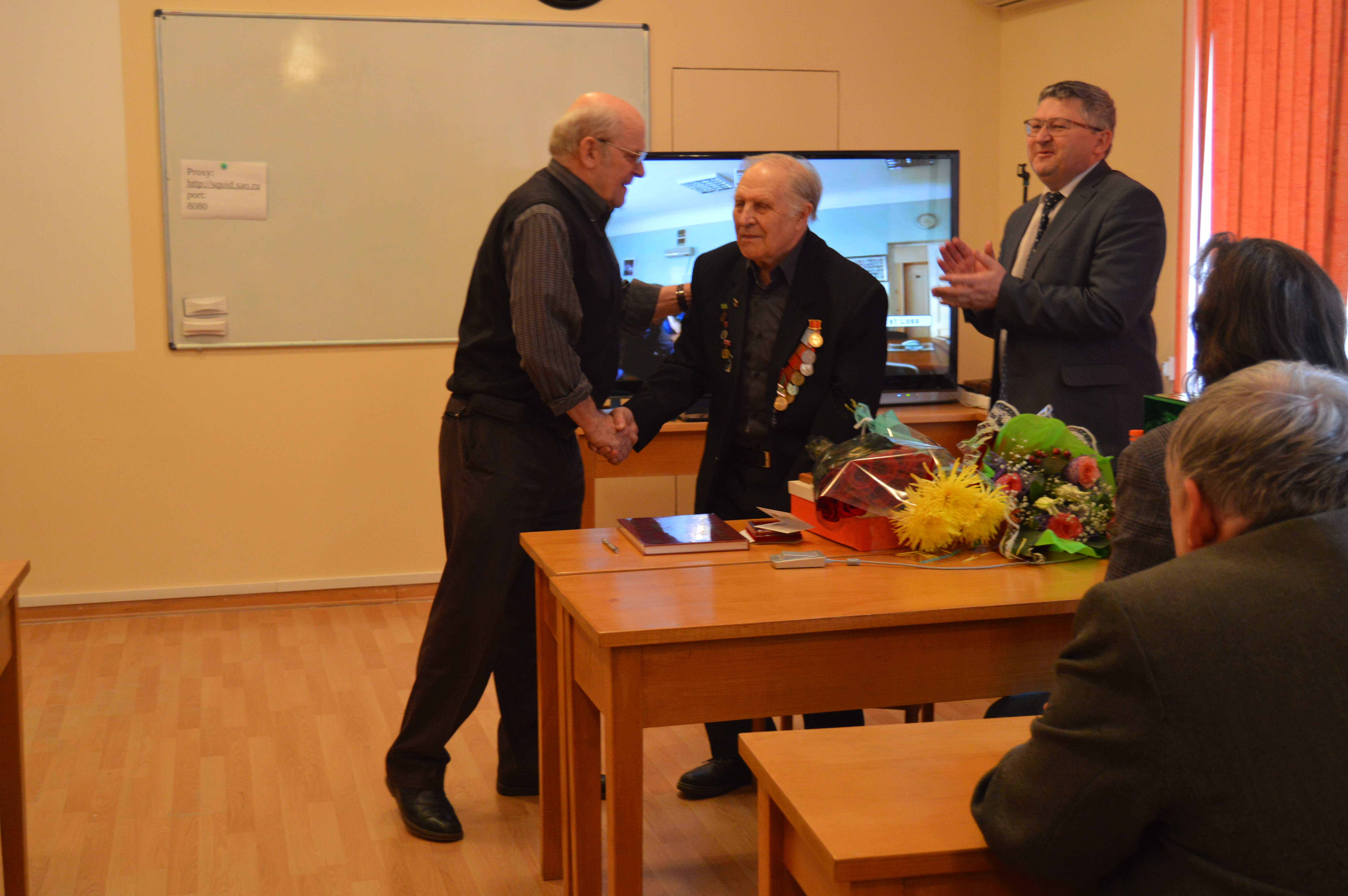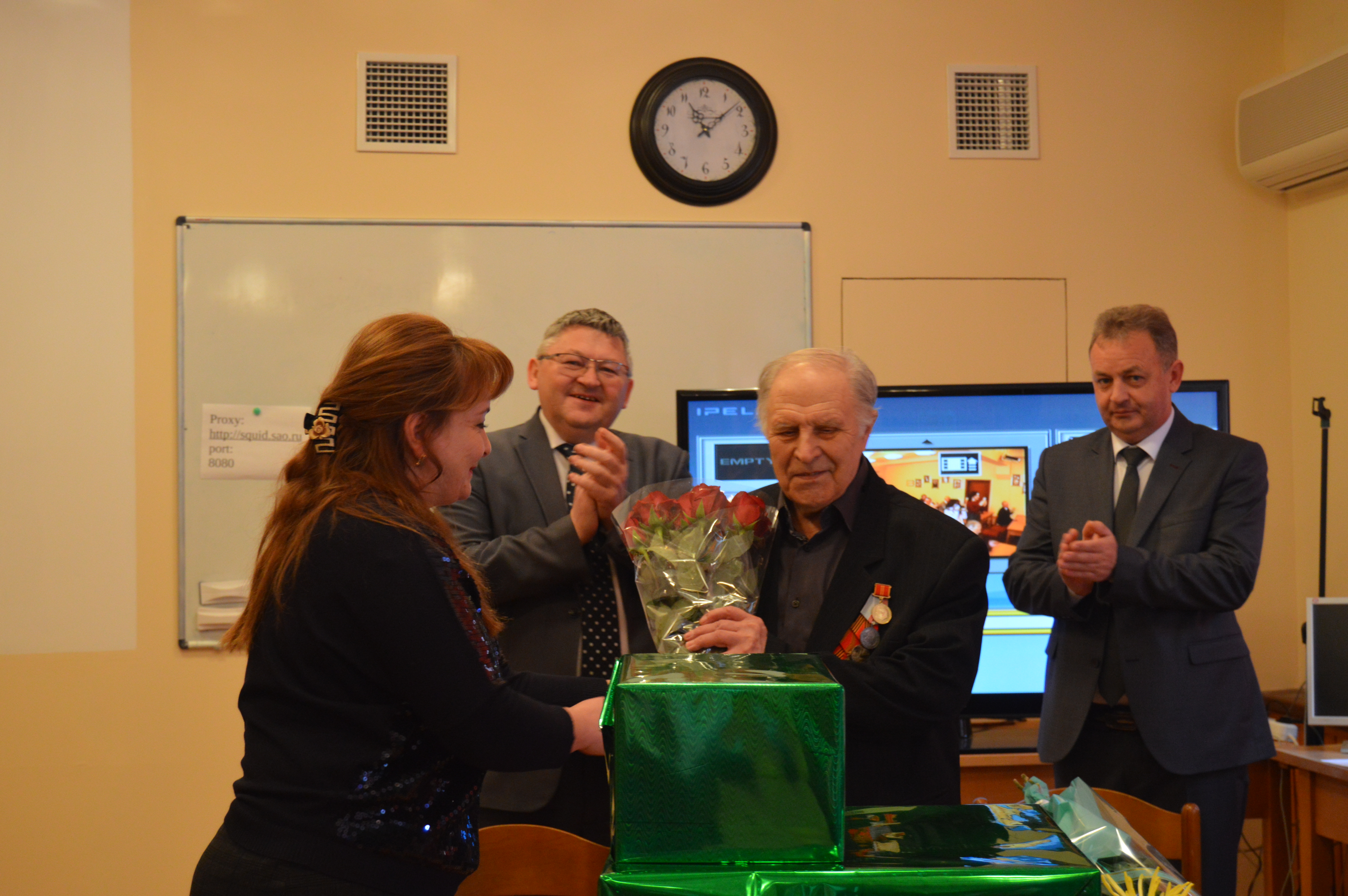 К сожалению, Игорь Михайлович Варваркин не смог присутствовать на торжественном собрании по причине плохого самочувствия. Представители власти и администрации САО поздравили его дома.