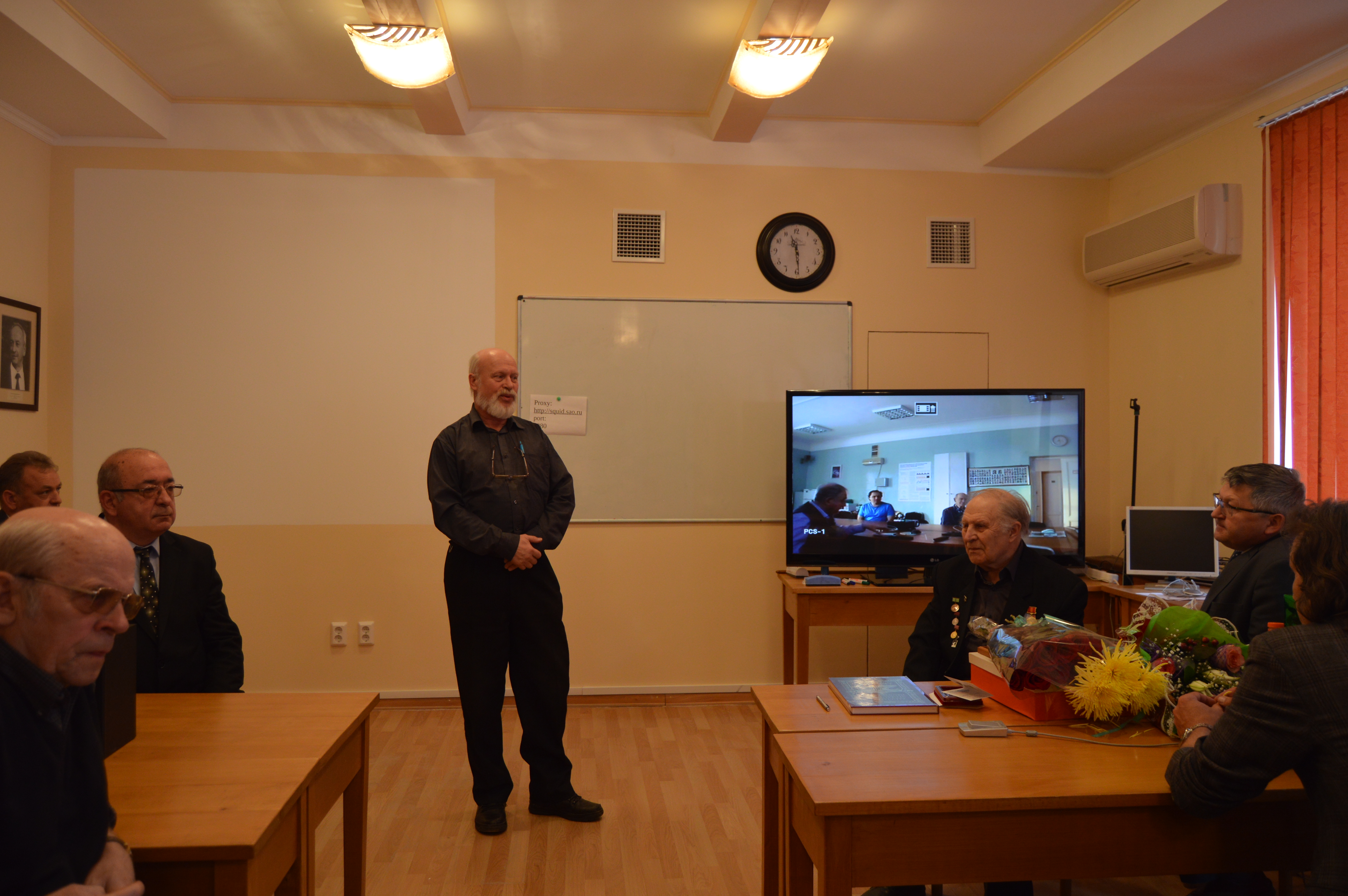 Владимир Михайлович Богод, руководитель Санкт-Петербургского филиала САО РАН, по телемосту рассказал о торжествах, которые состоялись в Санкт-Петербурге и поздравил Ю.В. Глаголевского.