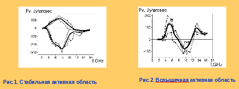 Для стабильных активных областей спектры поляризованного излучения носят