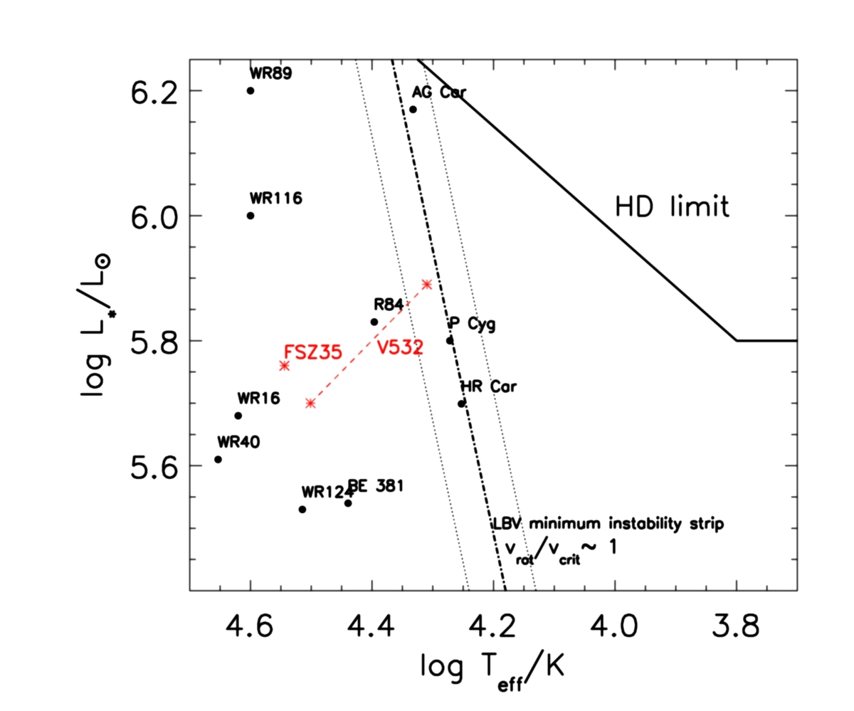 звезда V532 перешла из области "полосы минимумов LBV звезд" в область