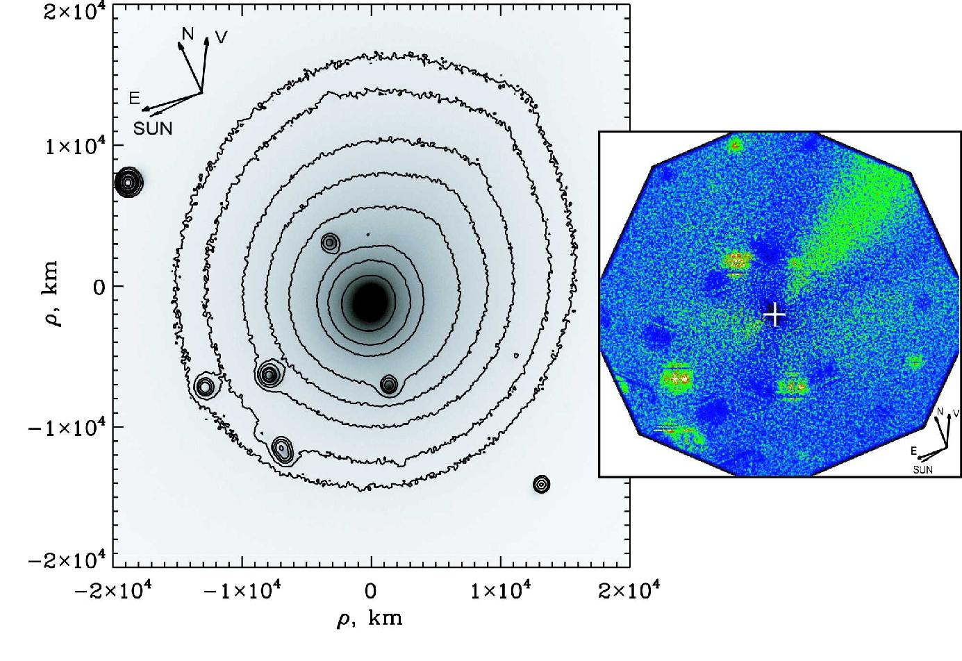 позволил выделить две структуры (пылевой и газовый хвосты) в ее коме,