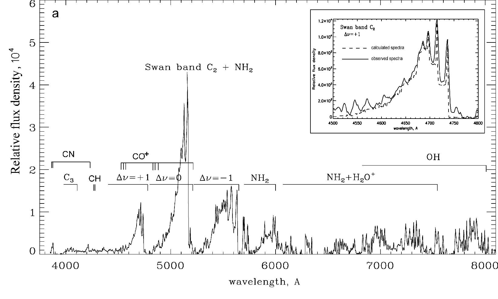 наблюдения кометы показали наличие богатого эмиссионного спектра; нам