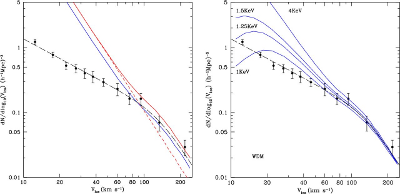 Обилие галактик как функция их круговых скоростей dN/dV является