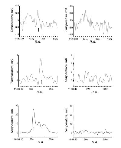 Переменность излучения на масштабах от долей секунды до десятков лет является одним из характерных свойств разных небесных объектов. Транзиентные события - это тоже переменность излучения, но не наблюдаемая регулярно. По этой причине такие события сложно обнаруживать. При анализе данных обзоров, проведенных на РАТАН-600, найдено, что почти у пятой части зарегистрированных источников радиопоток значительно меняется. При новом поиске обнаружены еще три радиотранзиента (рис.1).
