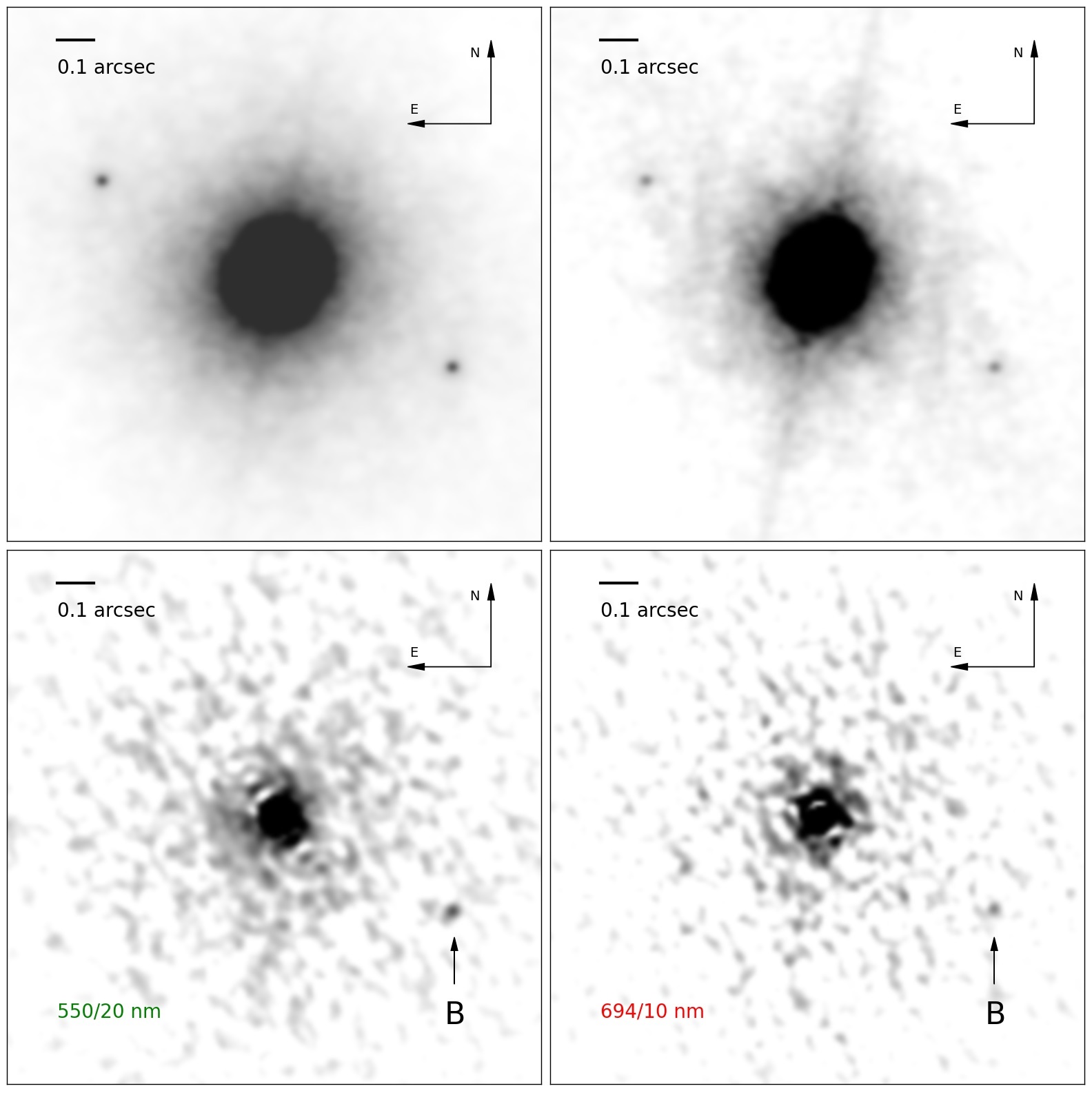 наблюдения системы в фильтрах 550/20 нм и 694/10 нм. Уточненное угловое